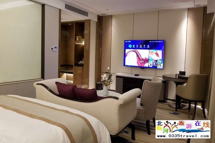 秦皇島金夢海灣度假酒店智能房間控制,50寸至70寸品牌電視、科勒衛(wèi)浴,數(shù)字電視、高速WIFI網(wǎng)絡、110/220伏不間斷電源、迷你冰箱等一應俱全。間間面朝大海---飽覽海的四季變化,處處觀景陽臺,酒店還設有中式餐飲大小包(雅間)。