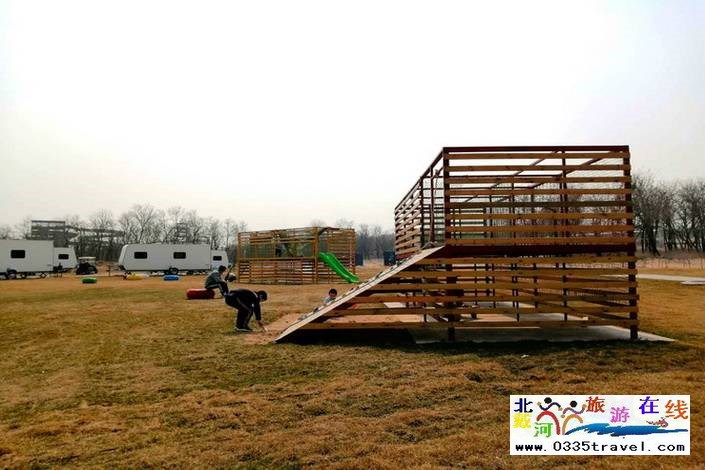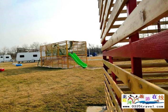 房車周圍還有好大一片兒童游樂場地,在房車里待悶了的小寶不一會就跑過去玩了。